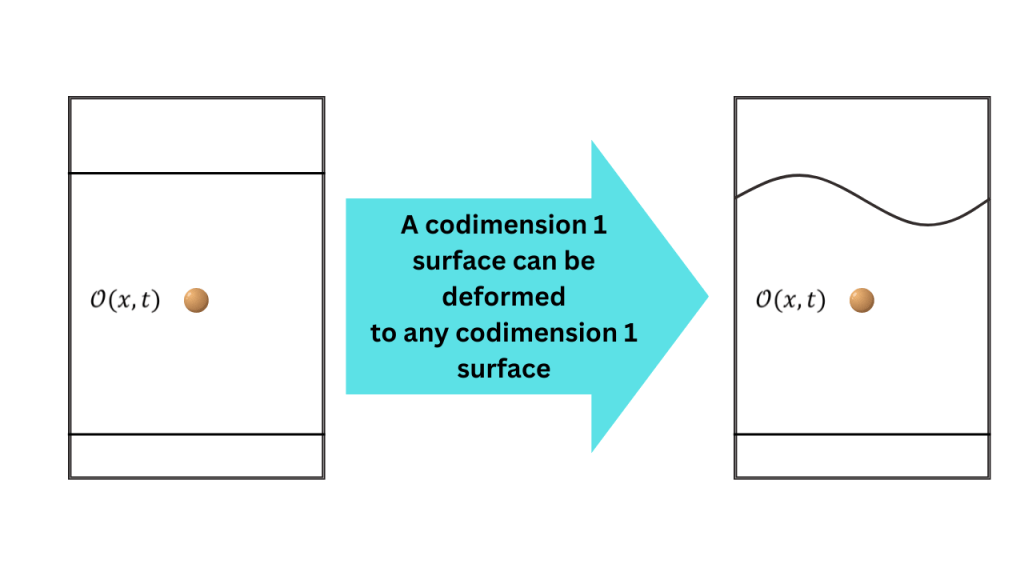 In the scenario with time slices, when we deformed U(t”), time slices were deformed to other time slices but now, we can deform a codimension 1 surface to any other codimension 1 surface.