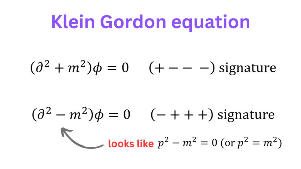 The question that I want to raise is, “Why momentum?”. One can also talk about the second partial derivative. In the (+ – – -) convention, the Klein Gordon equation looks like the equation for momentum squared in (-+++) convention and vice versa.